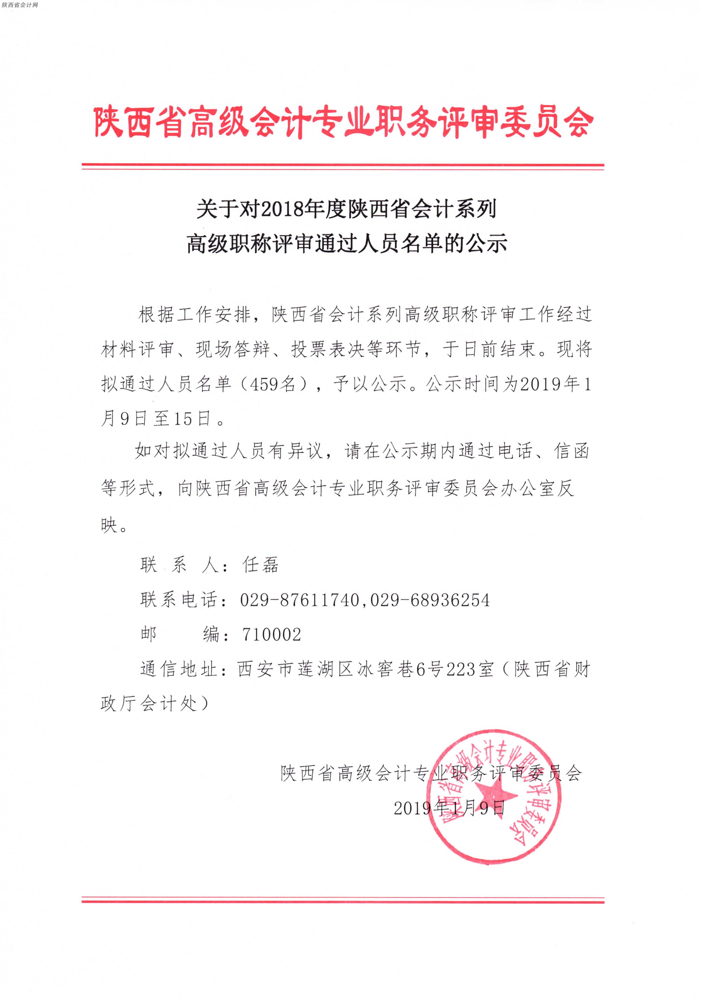 關(guān)于2018年度陜西省會計(jì)系列高級職稱評審?fù)ㄟ^人員名單的公示