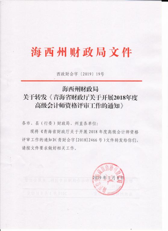 海西州財(cái)政局關(guān)于轉(zhuǎn)發(fā)《青海省財(cái)政廳關(guān)于開展2018年度高級(jí)會(huì)計(jì)師資格評(píng)審工作的通知》