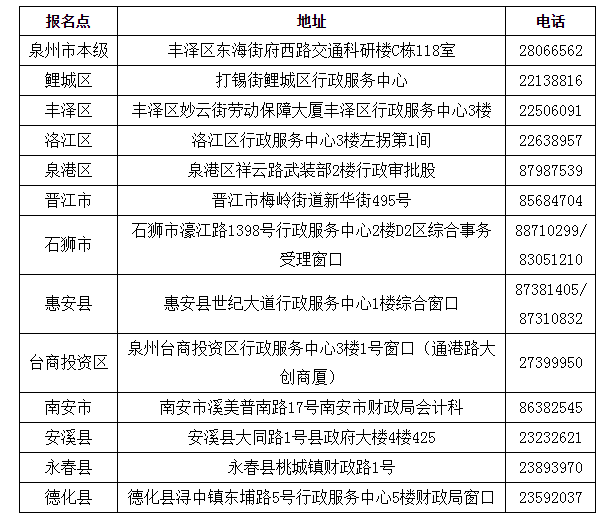 中級資格報考人員按工作單位屬地原則選擇報名點,即在泉市直單位、中央和省駐泉單位、駐泉部隊請選擇“泉州市本級報名點”,其他縣(市、區(qū))可選擇相應(yīng)報名點進行報名資格的審核及確認(rèn)。高級資格報考人員統(tǒng)一選擇“市本級報名點”進行資格審核及確認(rèn)。