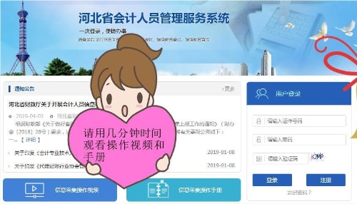 (一)會(huì)計(jì)人員登錄 “河北省會(huì)計(jì)人員管理服務(wù)系統(tǒng)”(http://rygl.hebcz.cn/)進(jìn)行注冊(cè)登錄、信息填報(bào)、材料上傳、確認(rèn)提交;