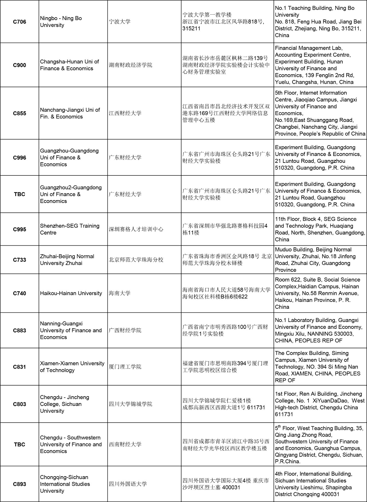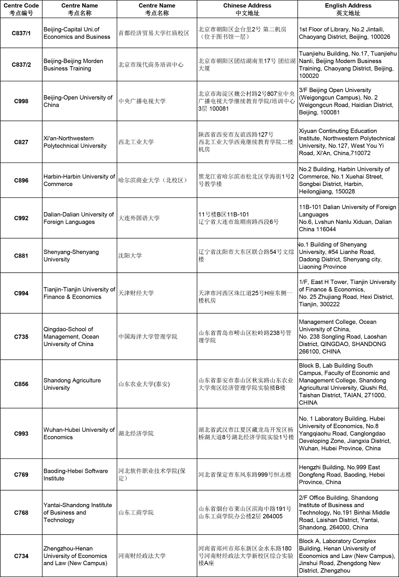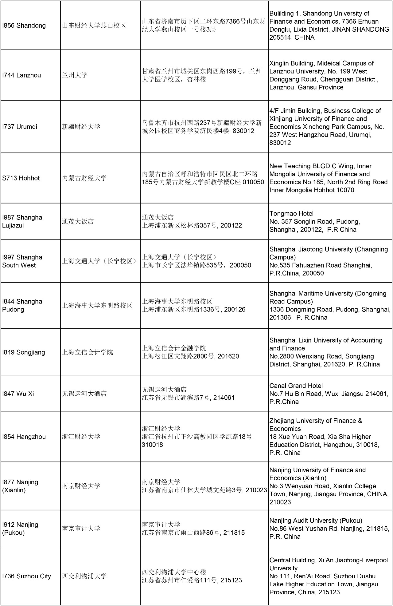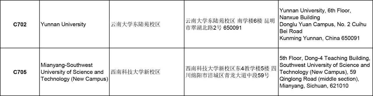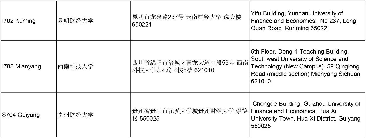 3. 以下考點(diǎn)中文信息匯總供參考,請以準(zhǔn)考證上的考試地點(diǎn)及時間為準(zhǔn);