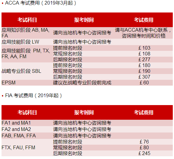 2019年ACCA考試費(fèi)用如下:
