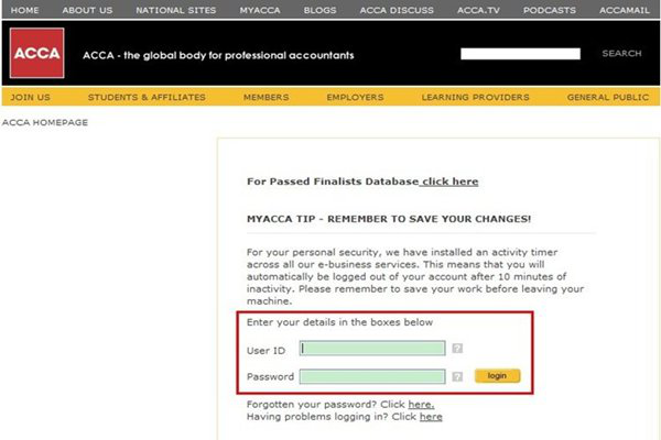 1、在ACCA官網(wǎng)主頁 www.accaglobal.com/en.html 點(diǎn)擊MY ACCA,進(jìn)入登陸頁面: