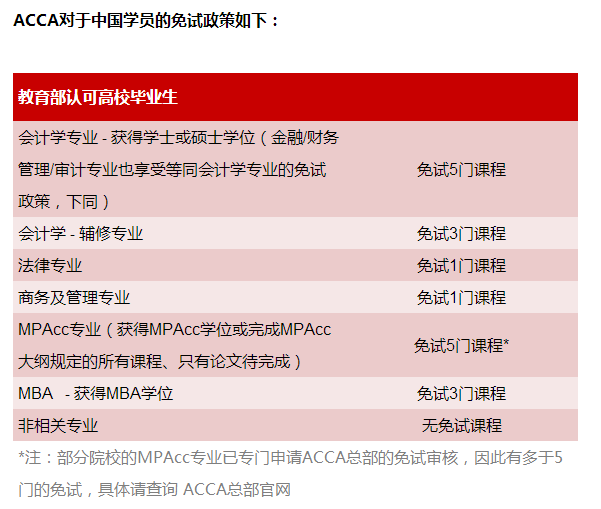 根據(jù)18年和19年的政策比較,大多政策沒有產(chǎn)生變化,唯獨(dú)取消了MPAcc學(xué)員免考9門的政策。按照現(xiàn)行政策,MPAcc學(xué)員可以申請(qǐng)免考5科,而對(duì)于已經(jīng)向ACCA正式申請(qǐng)免試審核的高校也可以申請(qǐng)免試5科以上。