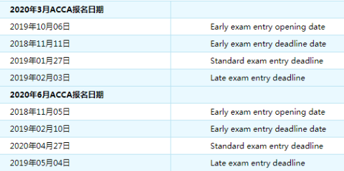 2020年ACCA考試日期: