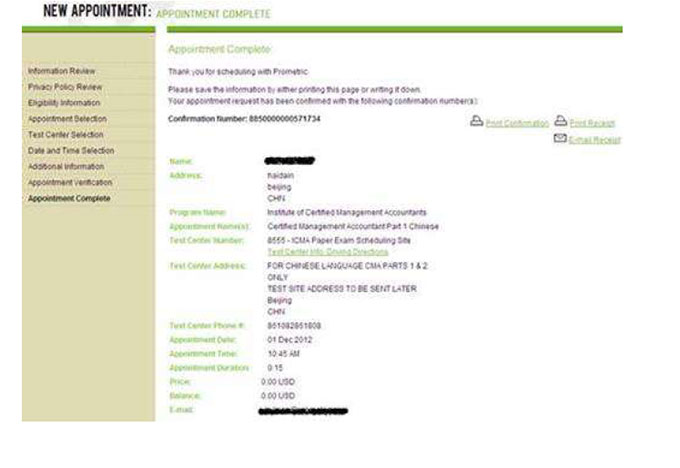 第六步、確認界面,確認號 confirmation number 與第一次預(yù)約相同。 有些郵箱不能收到自動發(fā)送的確認信,并不會影響考生參加考試。 但強烈建議考生手動點擊 email Receipt 或者 Print Receipt 保留確認號,或者截屏保存確認界面。