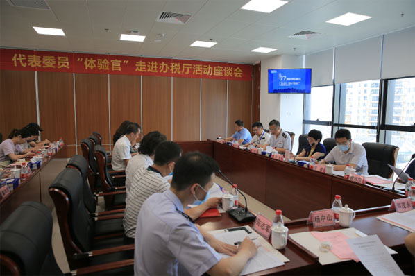 深圳市稅務局積極搭建與人大代表、政協(xié)委員的溝通橋梁,圖為代表委員“體驗官”走進辦稅廳座談會現(xiàn)場。