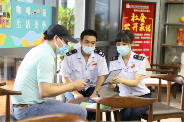江門稅務(wù)干部為大方旅游公司送上旅游業(yè)專屬優(yōu)惠政策。