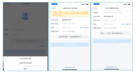 第一步:選擇實名認證方式。系統支持人臉識別認證注冊和大廳注冊碼注冊兩種方式。