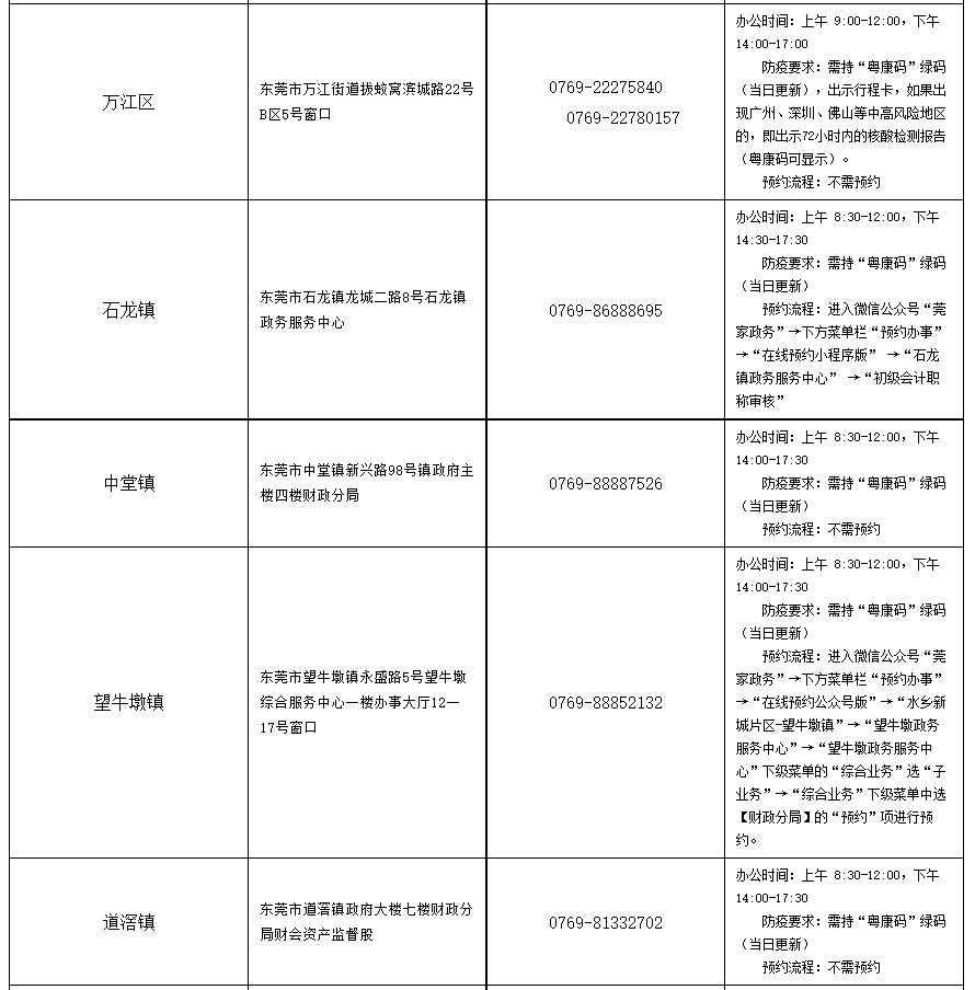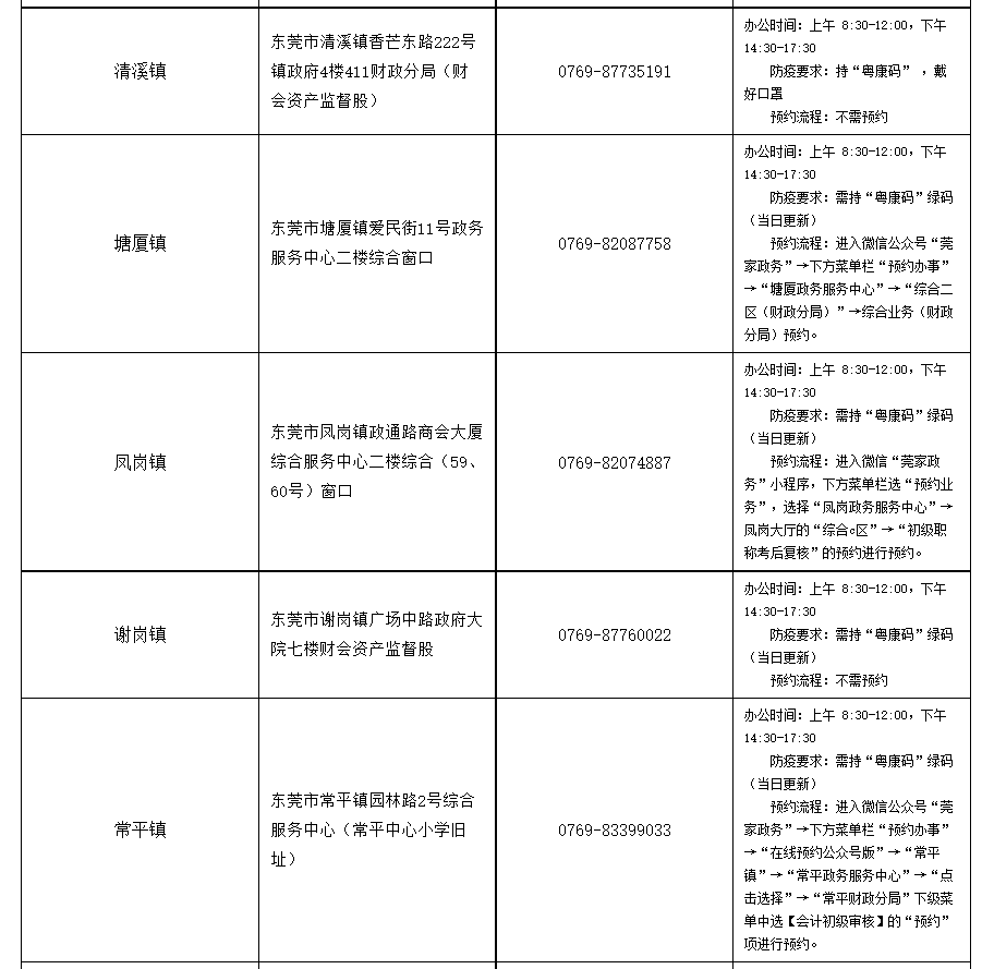 附件:廣東省2021年度會(huì)計(jì)技術(shù)初級(jí)資格考試考后資格(東莞考區(qū))復(fù)核現(xiàn)場(chǎng)受理一覽表.doc