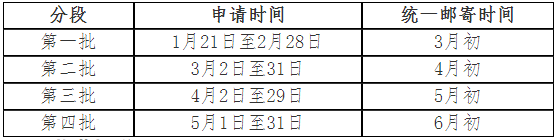 郵寄時間共有四個時間段,每一批申請時間段截止后需暫停1天處理數(shù)據(jù)。證書郵寄時間為截止日之后約5個工作日(節(jié)假日除外)。請認(rèn)真填寫與復(fù)核收件信息,不可在不同時間段重復(fù)申請,系統(tǒng)只默認(rèn)第一次的申請時間段進(jìn)行郵寄,如因個人原因產(chǎn)生退件費用與耽誤收件時間須本人承擔(dān)責(zé)任。
