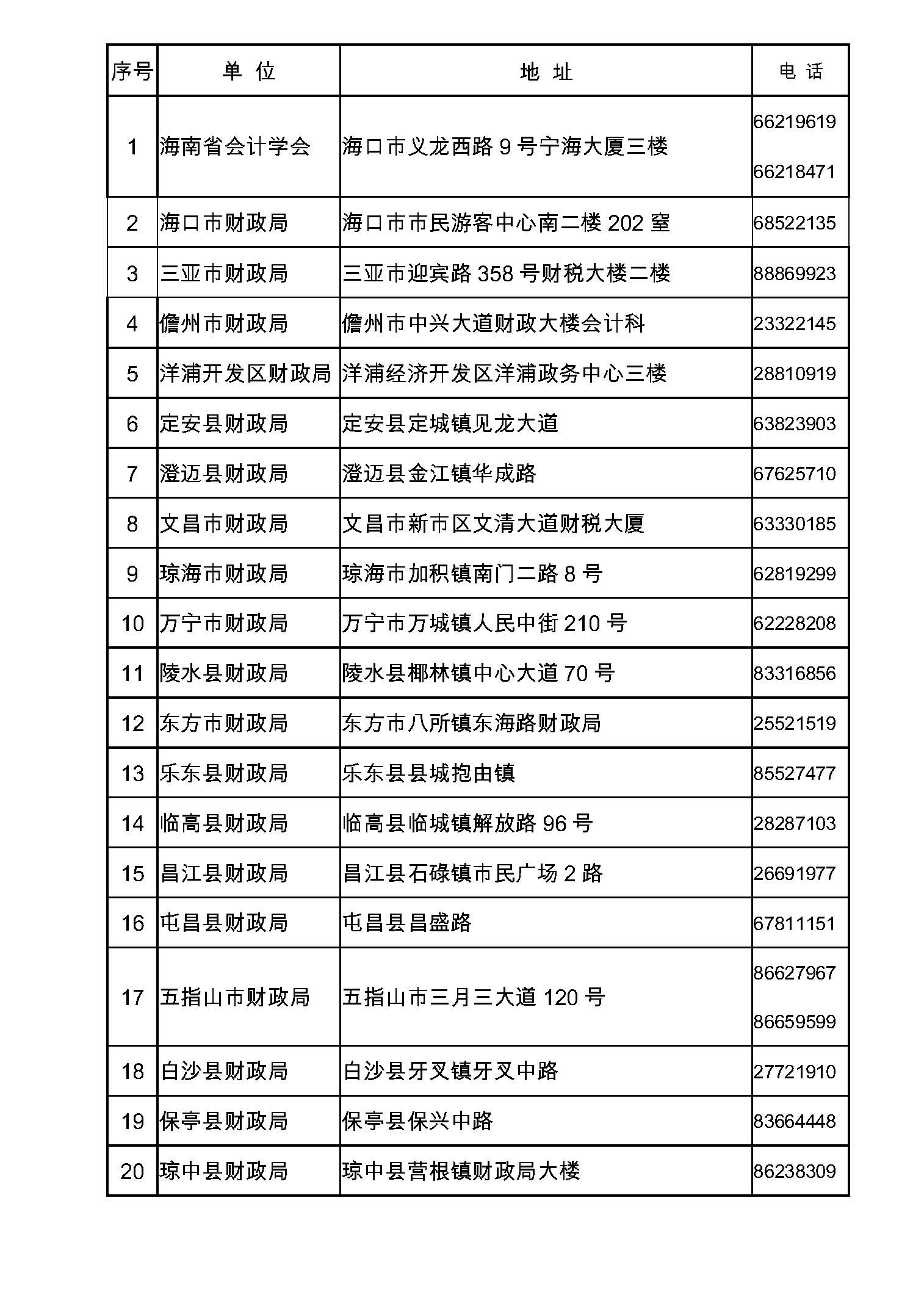 2022年度會(huì)計(jì)資格考試海南考區(qū)報(bào)名資格審核點(diǎn)(附件3)