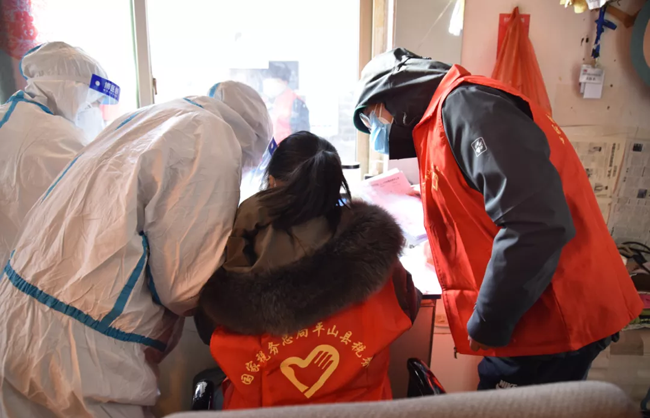 在高新技術(shù)產(chǎn)業(yè)開發(fā)區(qū),第一稅務(wù)所趙彥欣得知自己所住的小區(qū)工作人員不足時,主動申請擔(dān)任志愿者,在寒風(fēng)中維持秩序,幫助協(xié)調(diào)老人和嬰幼孩童優(yōu)先采樣,引導(dǎo)排隊人員提前掃碼登記家庭信息。