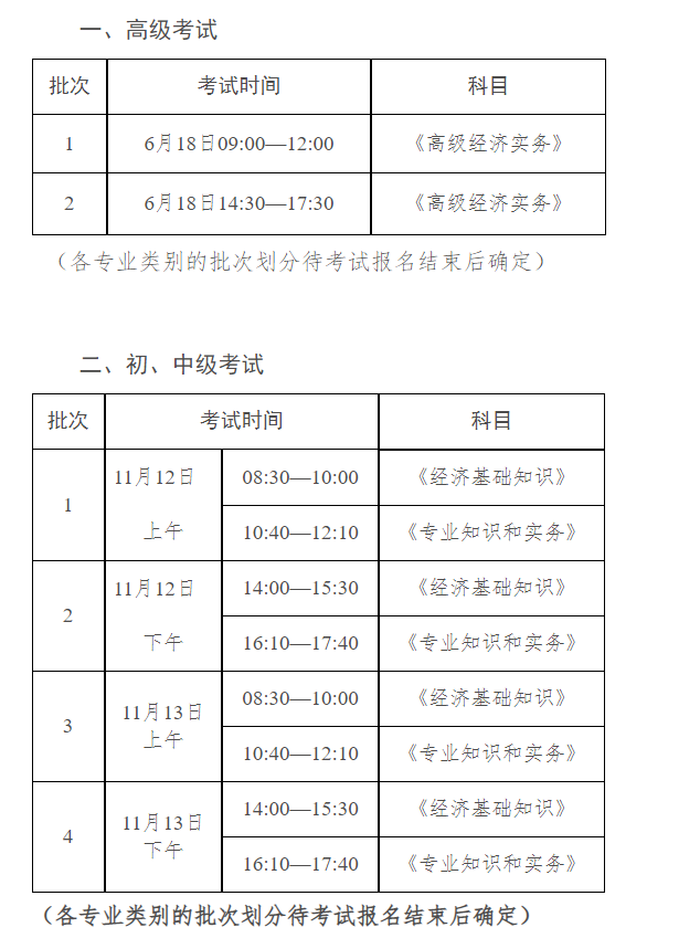 高級考試分上、下午2個批次實施(附件1)。各專業(yè)類別具體批次劃分和考試時間,視報名情況另行確定。