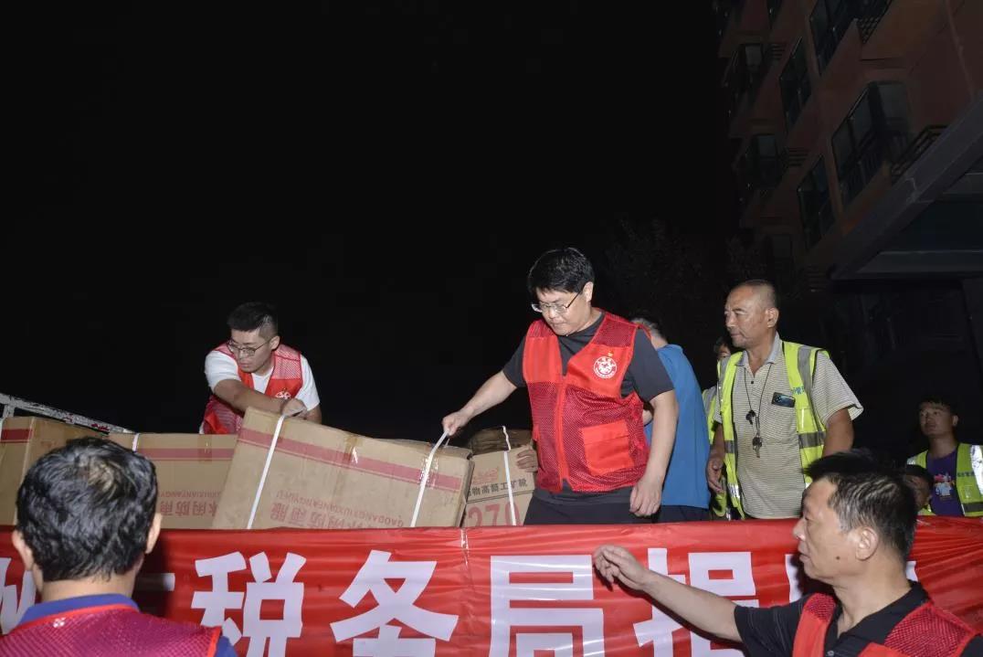 圖為鄭州市稅務(wù)局為地方捐贈(zèng)防汛救災(zāi)物資。