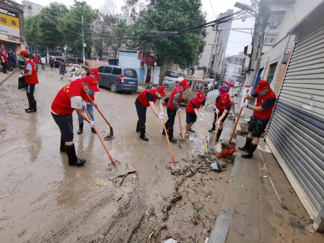 圖為鄭州市稅務(wù)局廣大黨員干部下沉社區(qū)防汛救災(zāi)。