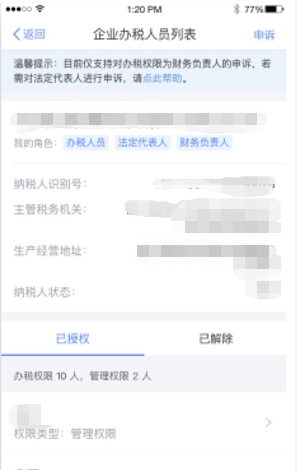 1.用戶通過個(gè)人中心,進(jìn)入企業(yè)辦稅權(quán)限,當(dāng)角色是法人或財(cái)務(wù)負(fù)責(zé)人的時(shí)候,點(diǎn)擊某個(gè)企業(yè),可以進(jìn)入重置申報(bào)密碼的觸發(fā)頁面。