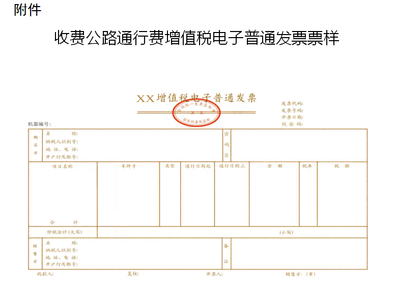 附件:收費(fèi)公路通行費(fèi)增值稅電子普通發(fā)票票樣