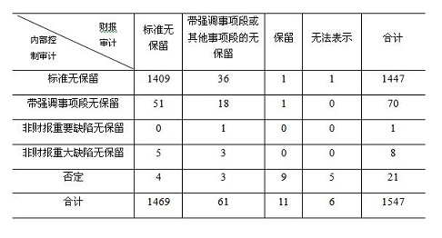 表11 2014-2016年內(nèi)部控制審計(jì)非標(biāo)準(zhǔn)審計(jì)意見比較