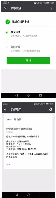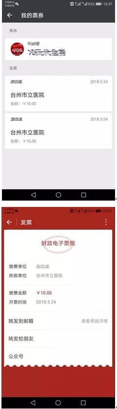 "微信不但能開電子發(fā)票,還能開財政的電子票據(jù)"。據(jù)悉,臺州市立醫(yī)院近日已可以領取電子票據(jù)。在臺州財政局主導下,微信、航信和臺州衛(wèi)健委聯(lián)合解決醫(yī)療電子票據(jù)交付"最后一里路"問題,打通患者就醫(yī)掛號、就診、交費、電子票據(jù)交付全閉環(huán)電子化管理。用戶在繳費后,可把電子票據(jù)直接保存到微信卡包里,既方便歸集保存,又方便線上報銷。