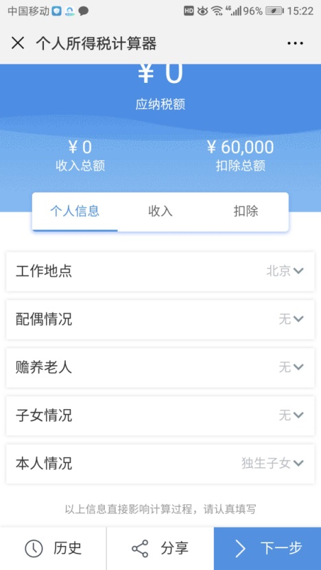 2、輸入項少,軟件可依據(jù)個人信息自動運算扣除額。例如,如果您是在北京或者上海工作,我們將根據(jù)您的工資自動計算三險一金。