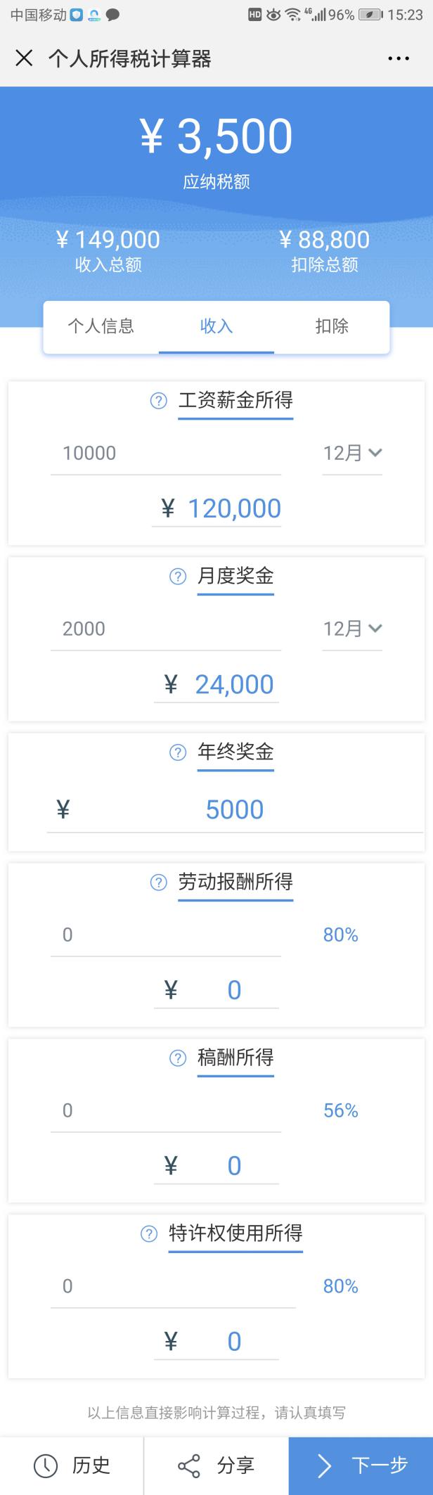 使用用友云稅務(wù)服務(wù)的計算器時,您只需輸入您的月工資和勞務(wù)報酬所得、稿酬所得、特許權(quán)使用費所得實得數(shù),我們將自動為您計算全年應(yīng)納稅所得。