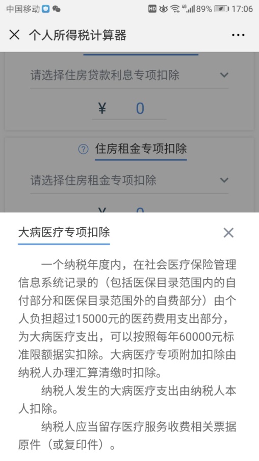 納稅人在一個納稅年度內(nèi)發(fā)生的自付醫(yī)藥費用超過1.5萬元部分,可在每年6萬元限額內(nèi)據(jù)實扣除。