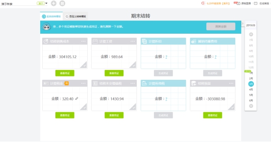 1. 進(jìn)入系統(tǒng)預(yù)置多種結(jié)轉(zhuǎn)模板:銷售商品成本、工資、折舊、損益、稅金等,每項(xiàng)結(jié)轉(zhuǎn)模板放在傳統(tǒng)軟件,都是分開操作;