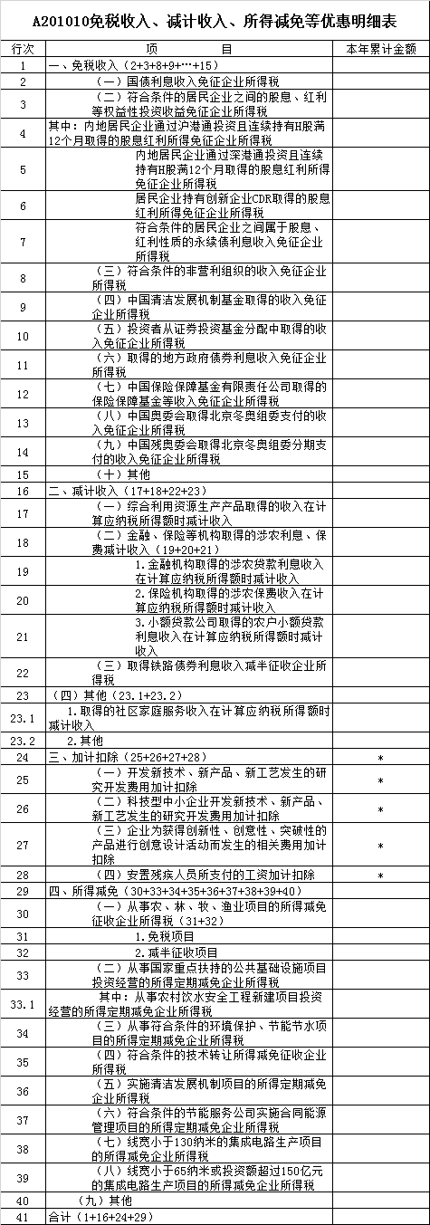 A201010《免稅收入、減計收入、所得減免等優(yōu)惠明細(xì)表》填報說明