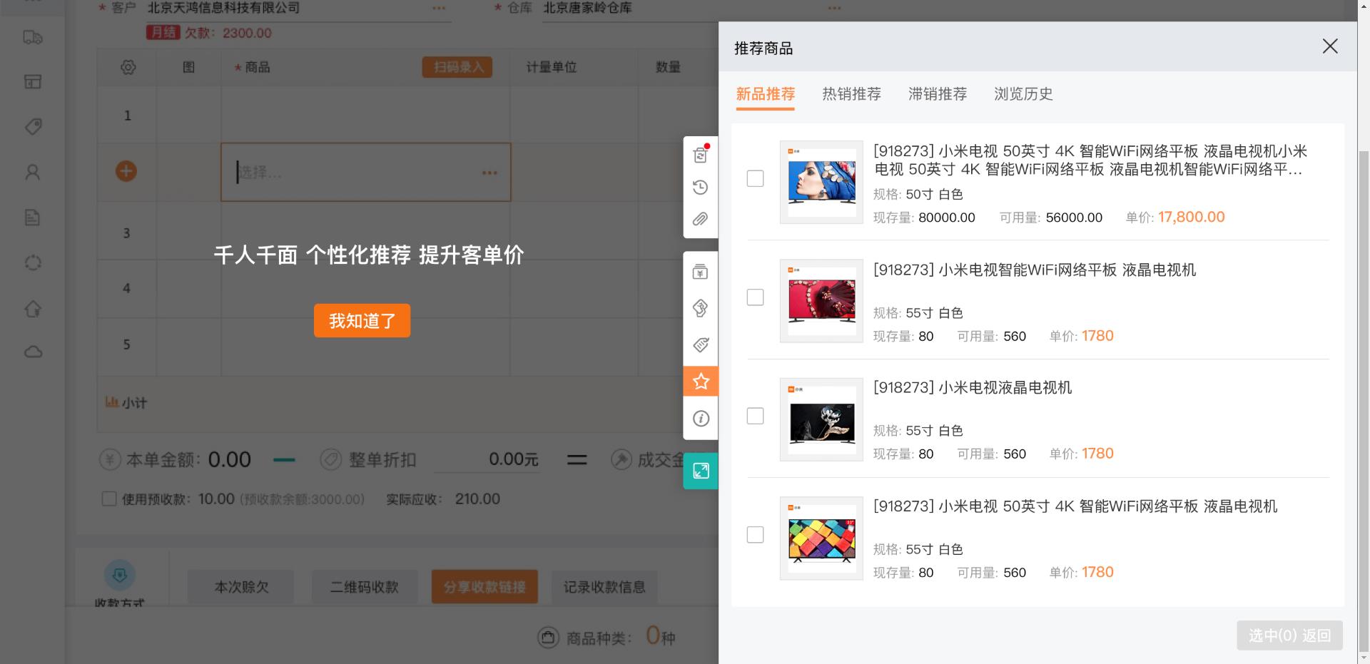使用好生意后,每次新品上市之前,業(yè)務(wù)員用手機旺鋪進行新品推廣,客戶可以先通過旺鋪自主下單體驗新品。或者文員在每次開單時通過“新品”模塊進行主動推薦,讓客戶先了解新品并提前下單。充分利用好生意獲取相對準確的新品訂單,這樣避免新品的超儲或缺貨,商品能穩(wěn)定銷售,公司每月業(yè)績都能夠保持穩(wěn)定增長。