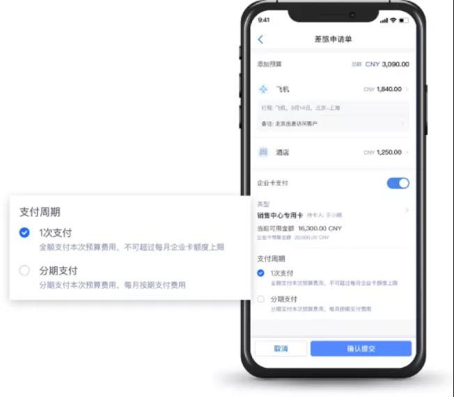 企業(yè)端管控 :公司在授權(quán)支付之前,通過(guò)預(yù)算做頂層控制,通過(guò)差標(biāo)做申請(qǐng)控制,再通過(guò)支付做消費(fèi)控制。
