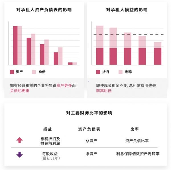 受新準(zhǔn)則影響,承租人的資產(chǎn)負(fù)債都將上升,而對企業(yè)損益和重點財務(wù)比率也會產(chǎn)生影響。