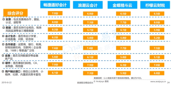 根據(jù)易觀發(fā)布的數(shù)據(jù)報(bào)告顯示,在云財(cái)務(wù)應(yīng)用產(chǎn)品使用綜合對(duì)比上,暢捷通好會(huì)計(jì)最受用戶滿意;在云財(cái)務(wù)應(yīng)用產(chǎn)品生態(tài)評(píng)分,暢捷通好會(huì)計(jì)獲用戶最高評(píng)分。