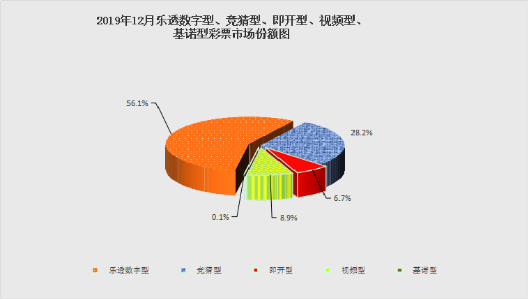 12月份,樂透數(shù)字型彩票銷售229.79億元,同比減少19.61億元,下降7.9%;競(jìng)猜型彩票銷售115.50億元,同比減少2.77億元,下降2.3%;即開型彩票銷售27.20億元,同比增加7.11億元,增長(zhǎng)35.4%;視頻型彩票銷售36.62億元,同比減少5.77億元,下降13.6%;基諾型彩票銷售0.16億元,同比增加0.07億元,增長(zhǎng)69.0%。12月份,樂透數(shù)字型、競(jìng)猜型、即開型、視頻型、基諾型彩票銷售量分別占彩票銷售總量的56.1%、28.2%、6.7%、8.9%、0.1%。