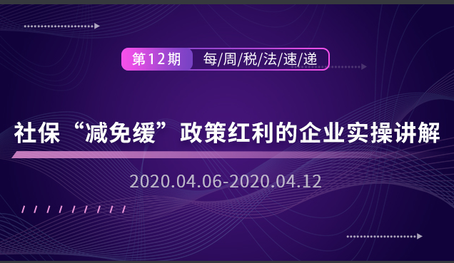 財稅直播課:2020每周稅法速遞(第十二期)——社保“減免緩”,政策紅利的企業(yè)實操講解