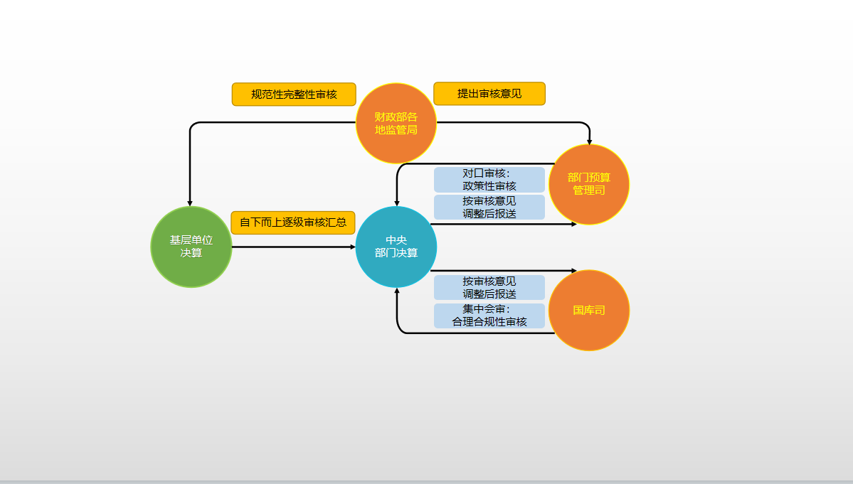 部門決算審核實行財政部各地監(jiān)管局駐地審核、部門預算管理司對口審核和國庫司組織集中會審相結(jié)合的審核機制,以保障中央部門決算編報質(zhì)量,為中央部門決算批復、公開工作打好基礎(chǔ)。審核內(nèi)容包括政策性審核、規(guī)范性完整性審核、技術(shù)性審核,以及項目績效評價結(jié)果審核等。審核后發(fā)現(xiàn)有不符合法律、行政法規(guī)規(guī)定,以及不完整不合理的,及時糾正,中央部門按審核意見調(diào)整并重新報送。財政部根據(jù)調(diào)整后的決算匯編形成中央部門決算草案。