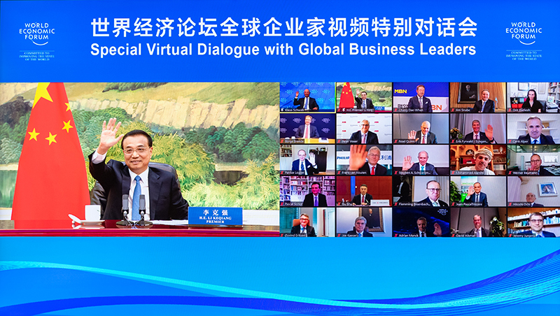 國(guó)務(wù)院總理李克強(qiáng)9月15日晚在人民大會(huì)堂出席世界經(jīng)濟(jì)論壇全球企業(yè)家特別對(duì)話會(huì),發(fā)表致辭并同企業(yè)家代表互動(dòng)交流。對(duì)話會(huì)以視頻方式舉行,世界經(jīng)濟(jì)論壇主席施瓦布主持,全球近600位企業(yè)家參加。