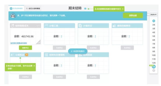 面對企業(yè)財務(wù)風(fēng)險時,暢捷通好會計能夠智能測算、異常預(yù)警,為企業(yè)財務(wù)風(fēng)險進行分析及檢查。同時,也能對財務(wù)檢查補遺漏,期末結(jié)轉(zhuǎn)一鍵完成,方便快捷。