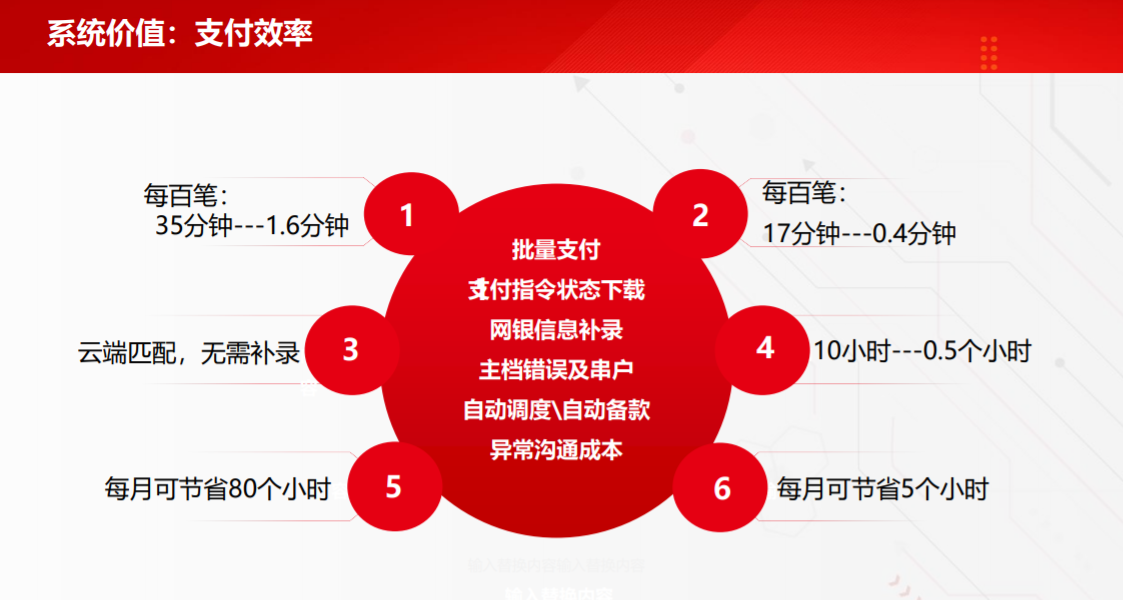 在原來傳統(tǒng)的銀企直聯模式,100筆的批量支付可能需要半個小時左右。到銀企聯云之后,1分鐘多就可以完成,效率提升21倍。