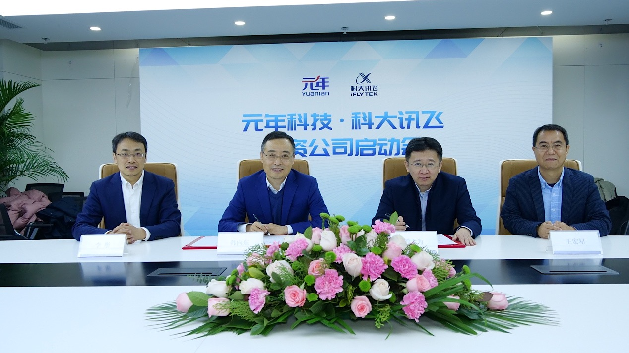 會上,元年科技總裁韓向東與科大訊飛高級副總裁段大為簽署啟動書