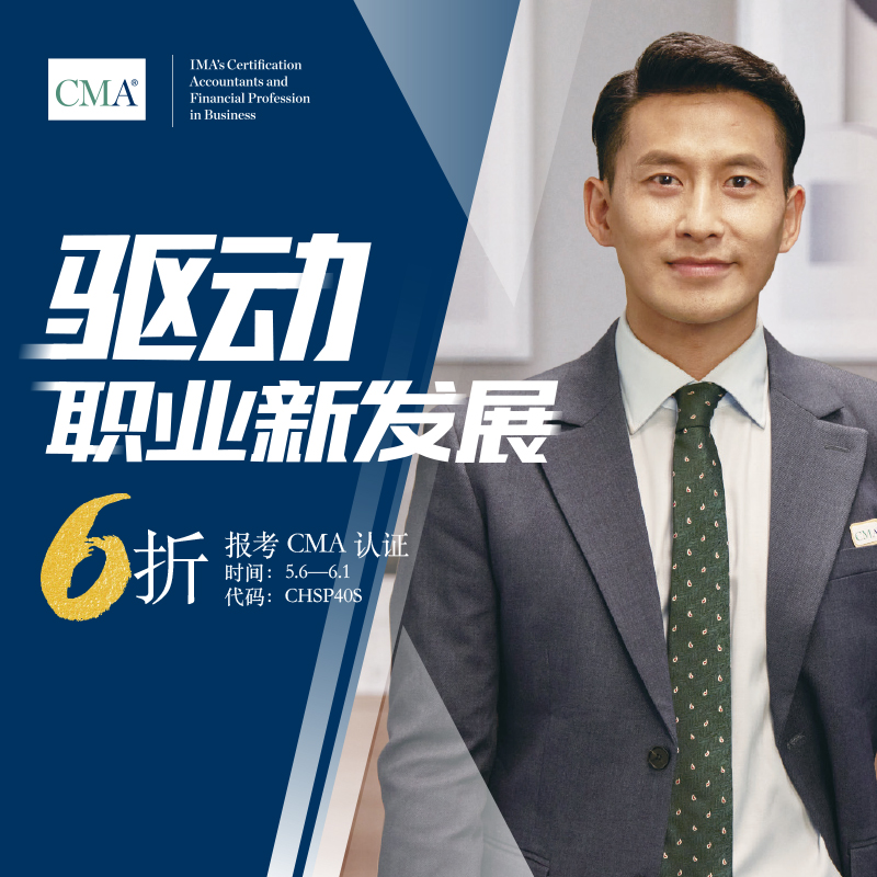 IMA美國管理里會計師協(xié)會決定將于2022年5月6日至6月1日,對CMA新在職考生與新學(xué)生考生進行優(yōu)惠活動,考生年費6折,CMA認(rèn)證考試準(zhǔn)入費6折,免除首次注冊費,在職考生共節(jié)省216美金,學(xué)生考生共節(jié)省102美金。折扣代碼為:CHSP40S