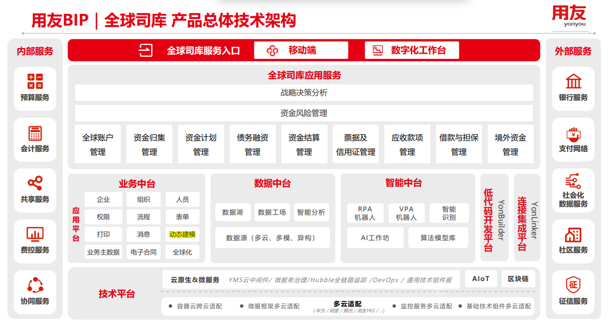 圖2 用友BIP全球司庫(kù)產(chǎn)品技術(shù)架構(gòu)