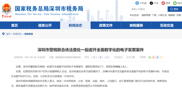 近期,深圳市稅務(wù)局公布了全國首例虛開全面數(shù)字化電子發(fā)票的案件。