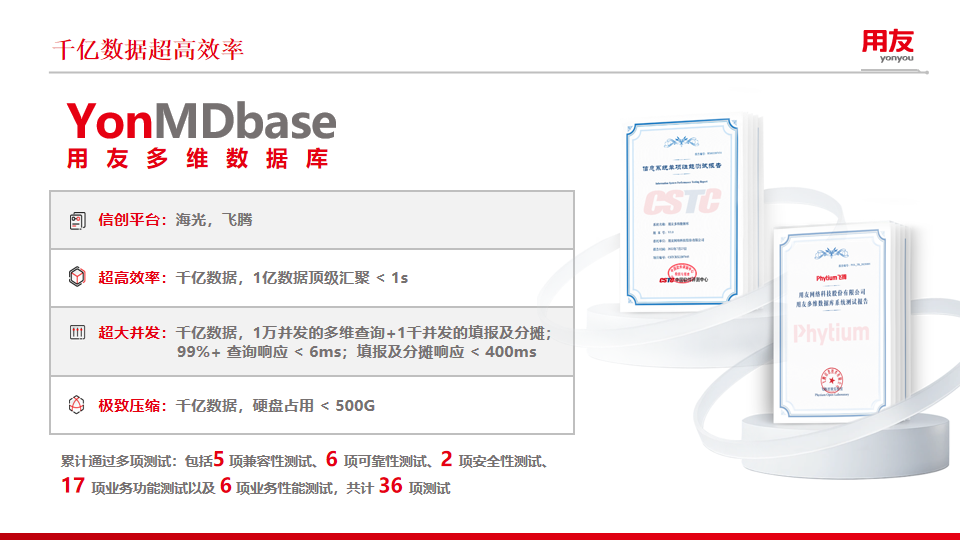 “科學(xué)技術(shù)是第一生產(chǎn)力”,用友自研的多維數(shù)據(jù)庫YonMDbase是用友BIP績效管理實(shí)現(xiàn)創(chuàng)新引領(lǐng)的關(guān)鍵。多維數(shù)據(jù)庫技術(shù)具備先天優(yōu)勢,它以多維數(shù)據(jù)模型來組織和存儲數(shù)據(jù),用于處理復(fù)雜的、多維度的數(shù)據(jù),易于從業(yè)務(wù)角度理解,能夠有效解決企業(yè)數(shù)據(jù)缺失、數(shù)據(jù)分散等常見的問題,從根本解決了一般績效管理類系統(tǒng)因?yàn)榛A(chǔ)數(shù)據(jù)問題而無法準(zhǔn)確、及時(shí)、精細(xì)地開展預(yù)測和分析的痛點(diǎn)。用友多維數(shù)據(jù)庫,除了應(yīng)對千億數(shù)據(jù)超高的性能外,還獲得了MDS多維引擎、卷積專有算法、多維叉積分頁算法、多維自適應(yīng)鎖機(jī)制等多項(xiàng)核心專利。