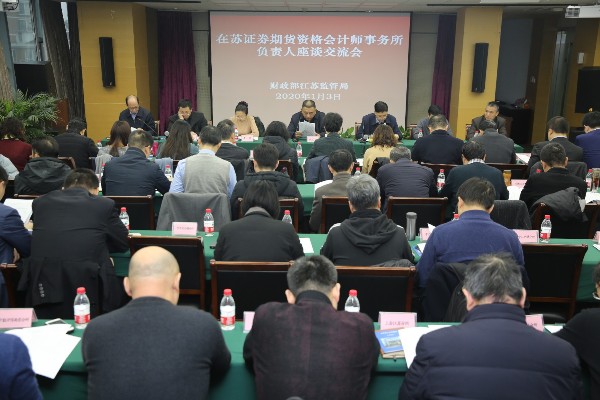 1月3日,財政部江蘇監(jiān)管局組織召開在蘇證券期貨資格會計師事務(wù)所負(fù)責(zé)人交流座談會。全省3家總所、42家分所負(fù)責(zé)人,江蘇省財政廳、證監(jiān)局、注協(xié)相關(guān)人員,江蘇監(jiān)管局班子和有關(guān)處室人員參加會議。局黨組書記、局長臧雪濤同志在會上作講話,7家會計事務(wù)所負(fù)責(zé)人圍繞提高執(zhí)業(yè)質(zhì)量作經(jīng)驗交流發(fā)言。