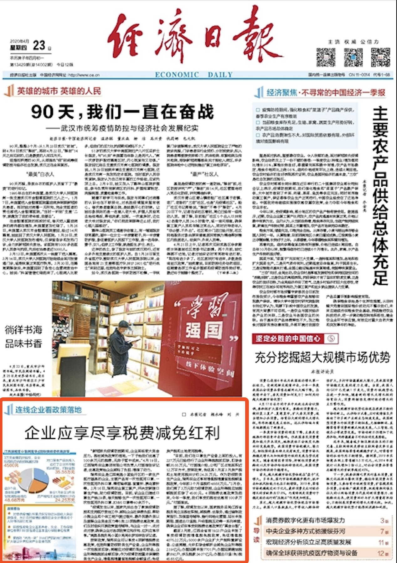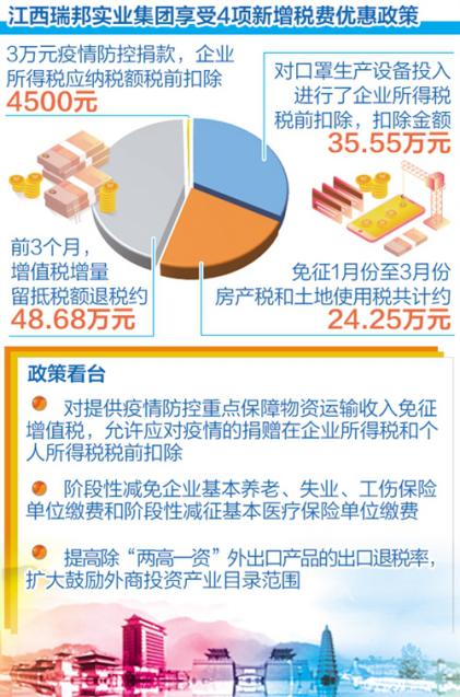 “新冠肺炎疫情防控期間,企業(yè)面臨較大資金壓力。稅收減免政策的落地,一下子給我們優(yōu)惠了100余萬元的稅費(fèi),無異于雪中送炭。”4月19日,江西瑞邦實(shí)業(yè)集團(tuán)有限公司負(fù)責(zé)人付國強(qiáng)告訴記者,優(yōu)惠政策給企業(yè)減輕了負(fù)擔(dān)、增強(qiáng)了動(dòng)力。