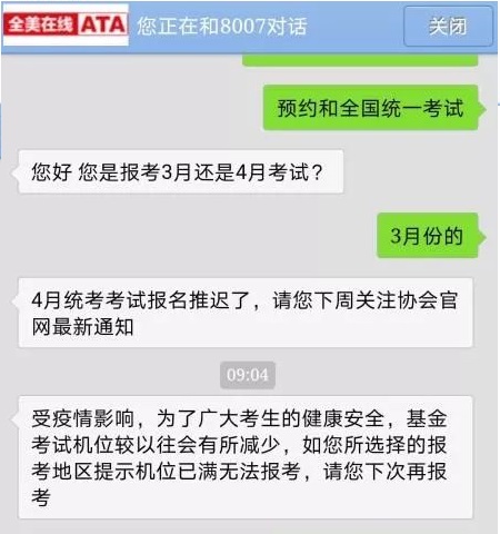 受疫情影響,涉及到2月3月4月大部分考試已經(jīng)推遲報名或考試,截止到目前為止,中國證券投資基金業(yè)協(xié)會也沒有發(fā)布相關延期報名考試的通知。但今日網(wǎng)傳,2020年3月基金從業(yè)資格預約式考試報名(報名時間1月13日10:00開始至3月6日)和4月基金從業(yè)資格統(tǒng)考報名(報名時間2月24日10:00至4月6日)會延期舉行,截圖如下: