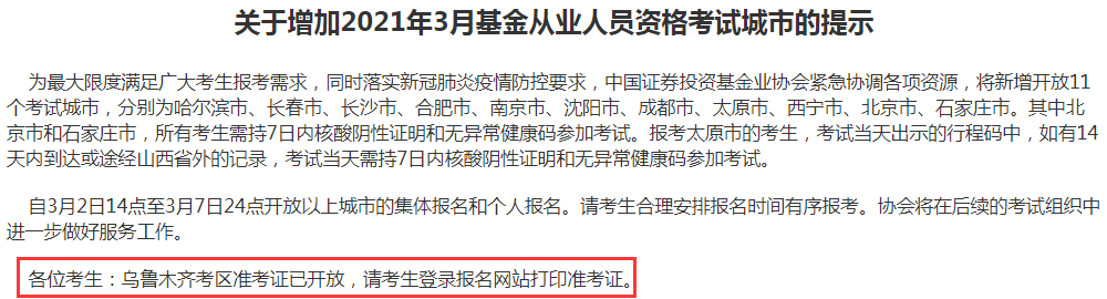 點擊進(jìn)入2021年3月新疆基金從業(yè)資格準(zhǔn)考證打印入口