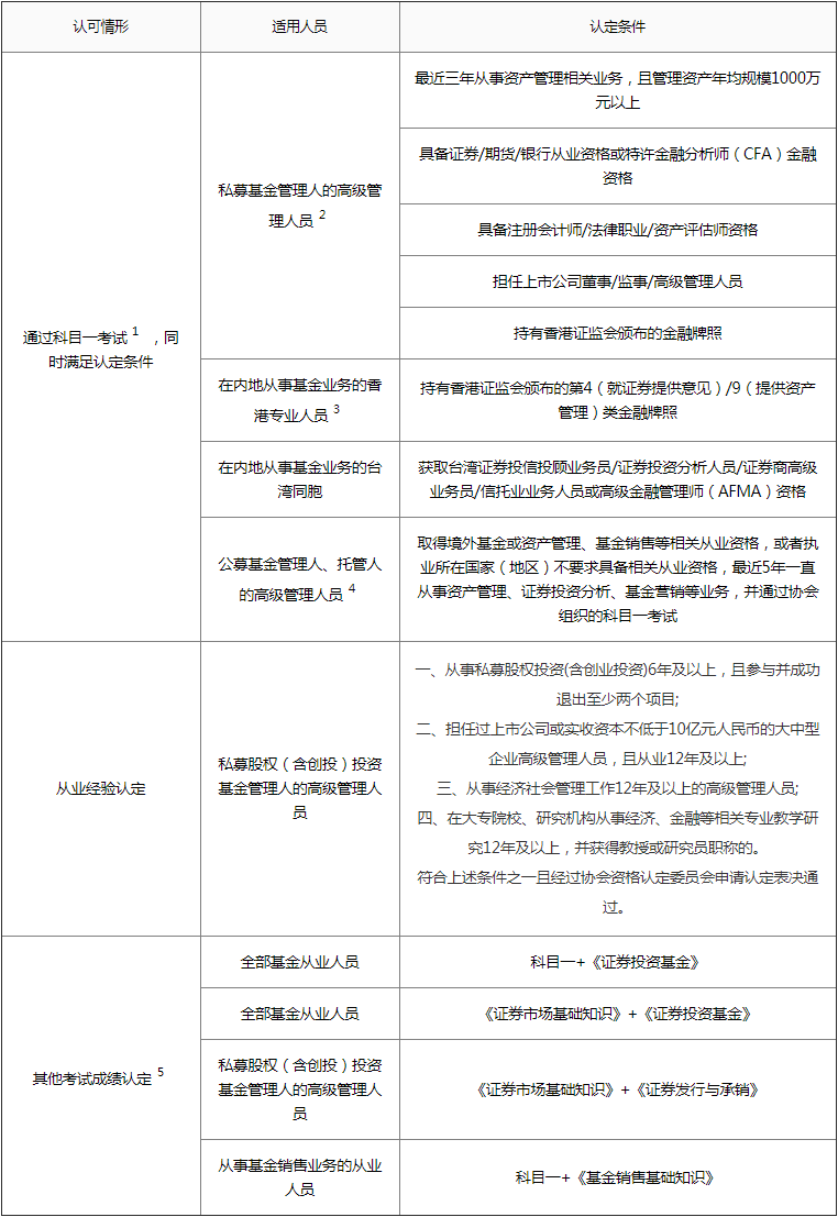基金從業(yè)資格認(rèn)可情形對照表