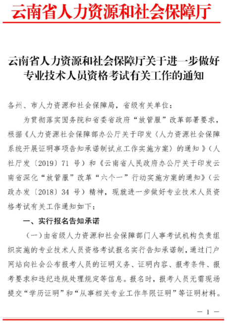云南省人力資源和社會(huì)保障廳關(guān)于進(jìn)一步做好專業(yè)技術(shù)人員資格考試有關(guān)工作的通知